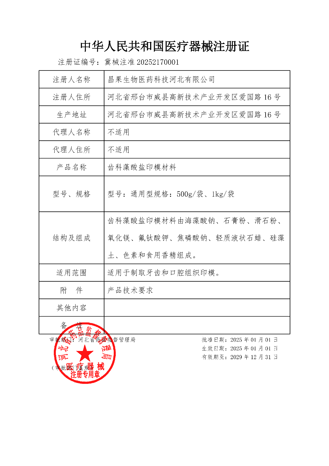 在新春到来之际 ,我们迎来了齿科藻酸盐印模材料的注册证,为公司的发展再添助力。